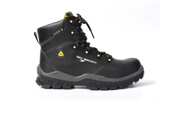 Bota de segurança (SIP) acolchoada, confeccionada em microfibra, com lingueta semi-fole, biqueira de composite resistente ao impacto, palmilha antiperfurante (P) e solado em poliuretano (PU) bidensidade injetado diretamente no cabedal. Oferece resistência ao escorregamento em piso de cerâmica contaminado com lauril sulfato de sódio (detergente) e piso de aço contaminado com glicerol (SRC).
